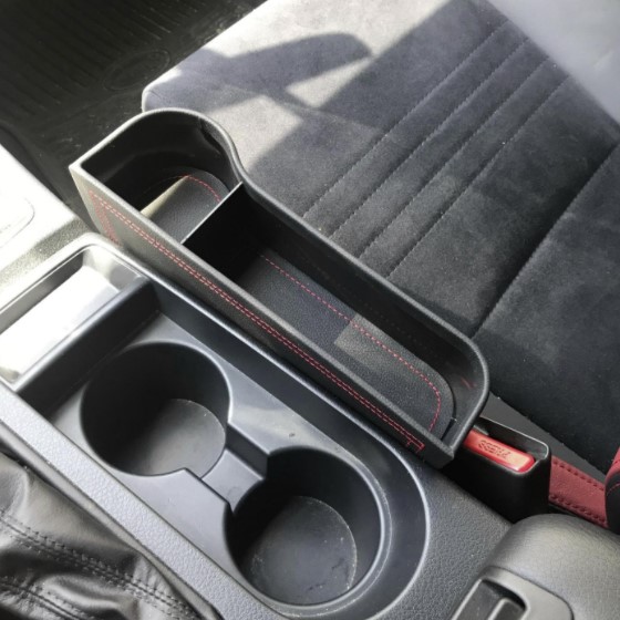 I bought this with the intent of extra storage. My vehicle doesn’t offer a lot in between the front two seats. This totally did the trick. I’ll be buying another one for the passenger side.