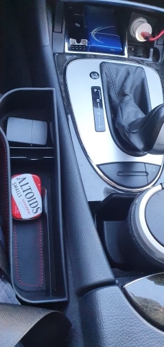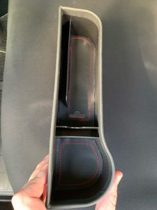 I am a real estate broker and have people in and out of my car constantly – even during COVID-19. This has prevented either me or my passenger from dropping our phones, pens, keys, paper clips and other items between the seats. It’s sturdy, doesn’t affect the ease of seatbelt use or the power seats that automatically retreat for east of entry/exit the vehicle. The black with red stitching gets great complements given the match to my Porsche interior – also black with red stitching. Extra places to put business cards, facemasks, sunglasses – especially for passengers who might spend the day with you looking at property and they bring a lot of stuff with them. Great product.