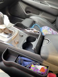 This is a great organizing tray depending on your car. I have a 2017 RAV4 and it does not really fit on the side of my seat as the sides bulges up, sort of like racer seats. I tried it on my mom’s Corolla and it fits perfectly.