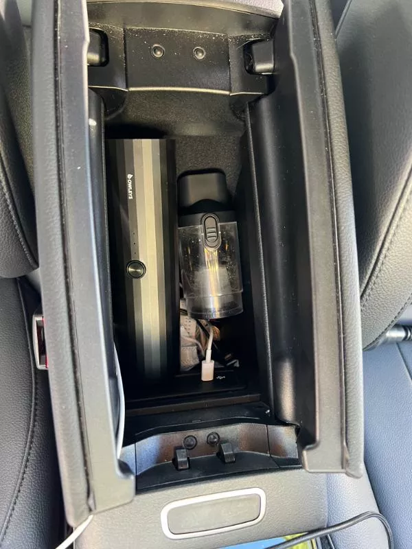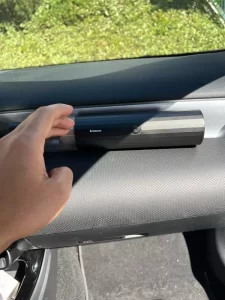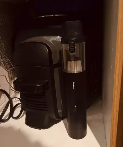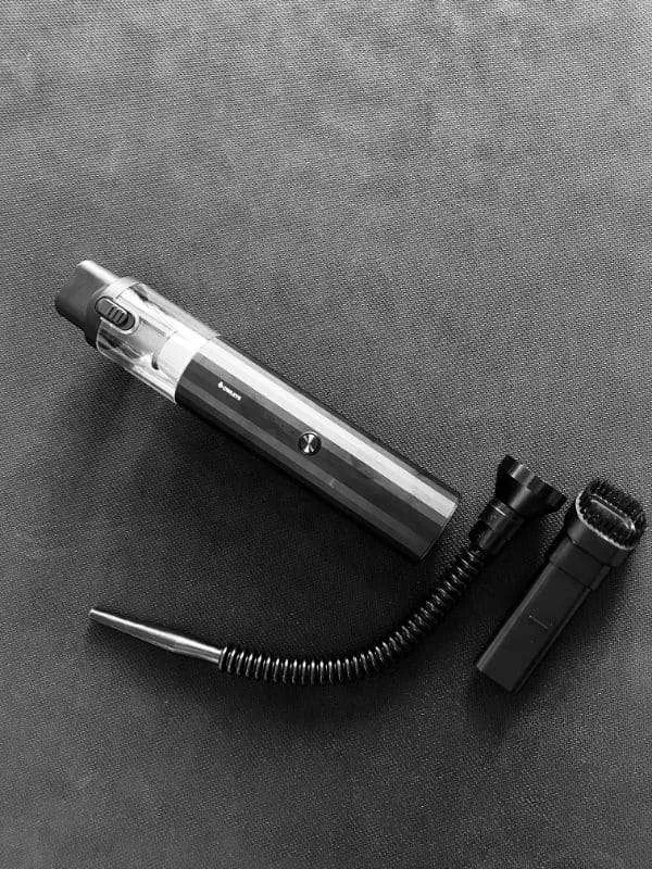 admire sleek and minimalistic design of this car vacuum cleaner. It seamlessly blends into my car interior, and it doesn’t take up much space. I couldn’t be happier with the results.